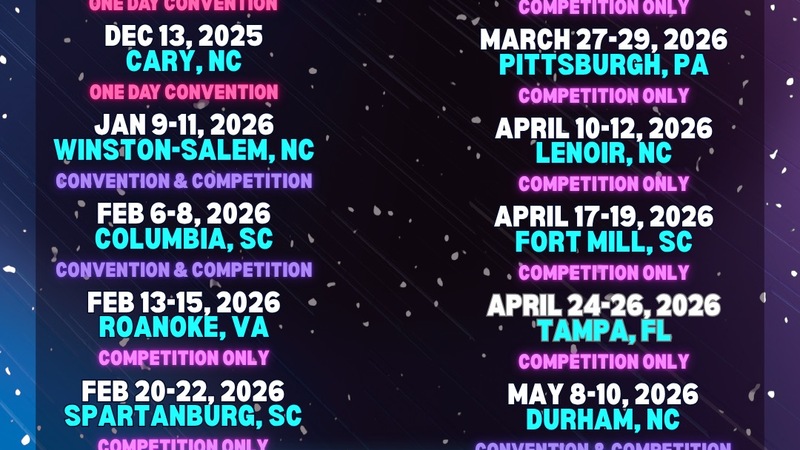 | Competition | Mooresville , NC | Mooresville Performing Arts Center at Mooresville High School | 510 mi | 03/06/2026 | 03/08/2026 |